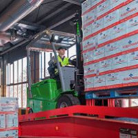 The Cesab B200s are operated on the production shopfloor where they move packaging through the production areas.The Drago 400s work in the external loading bay where they collect pallets containing water bottles and move them through the external warehouse area and the loading bay placing full pallets onto the lorry.