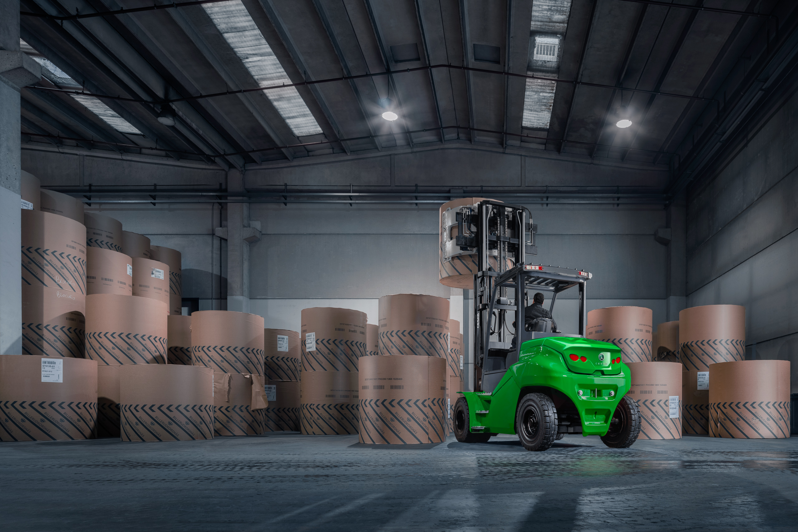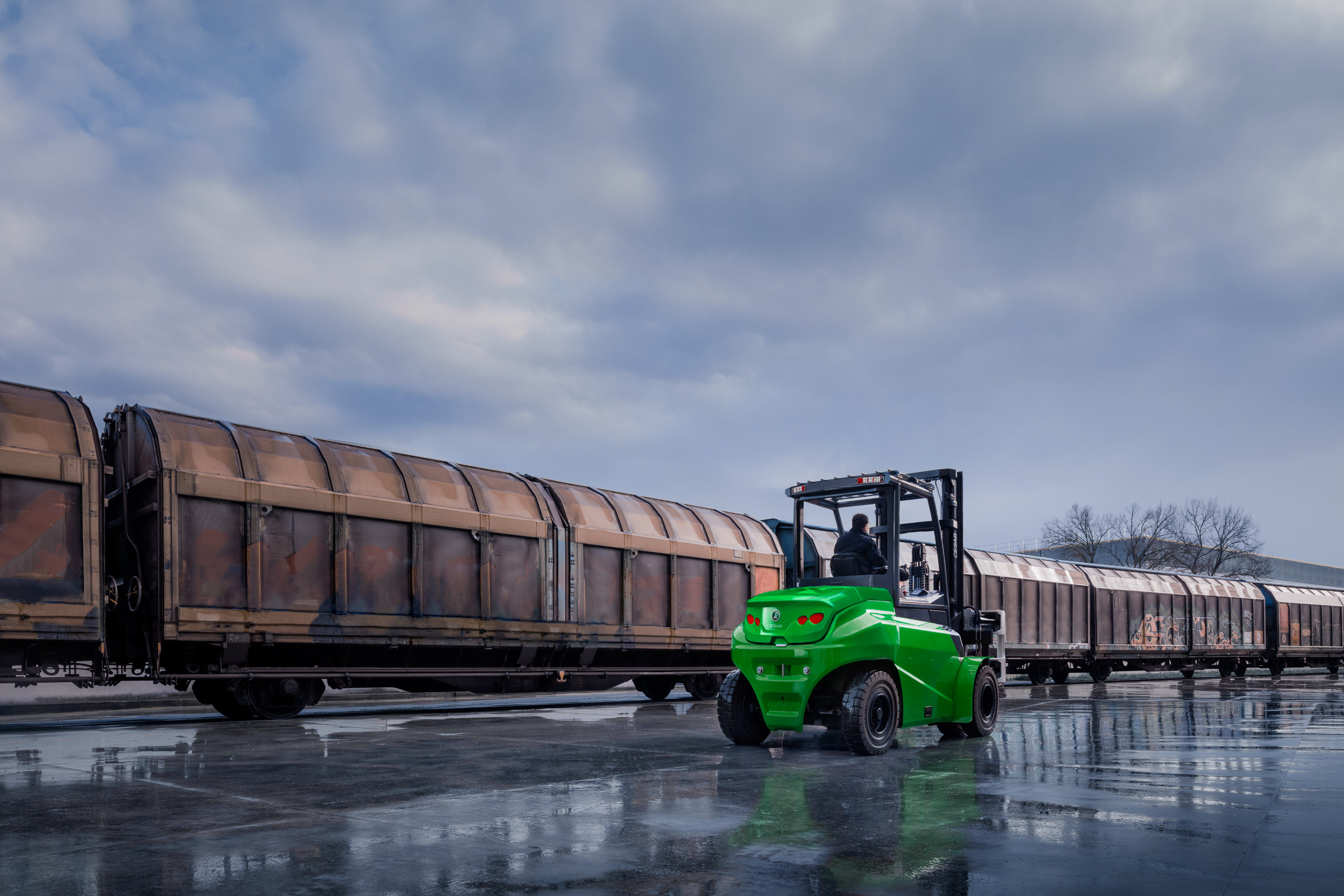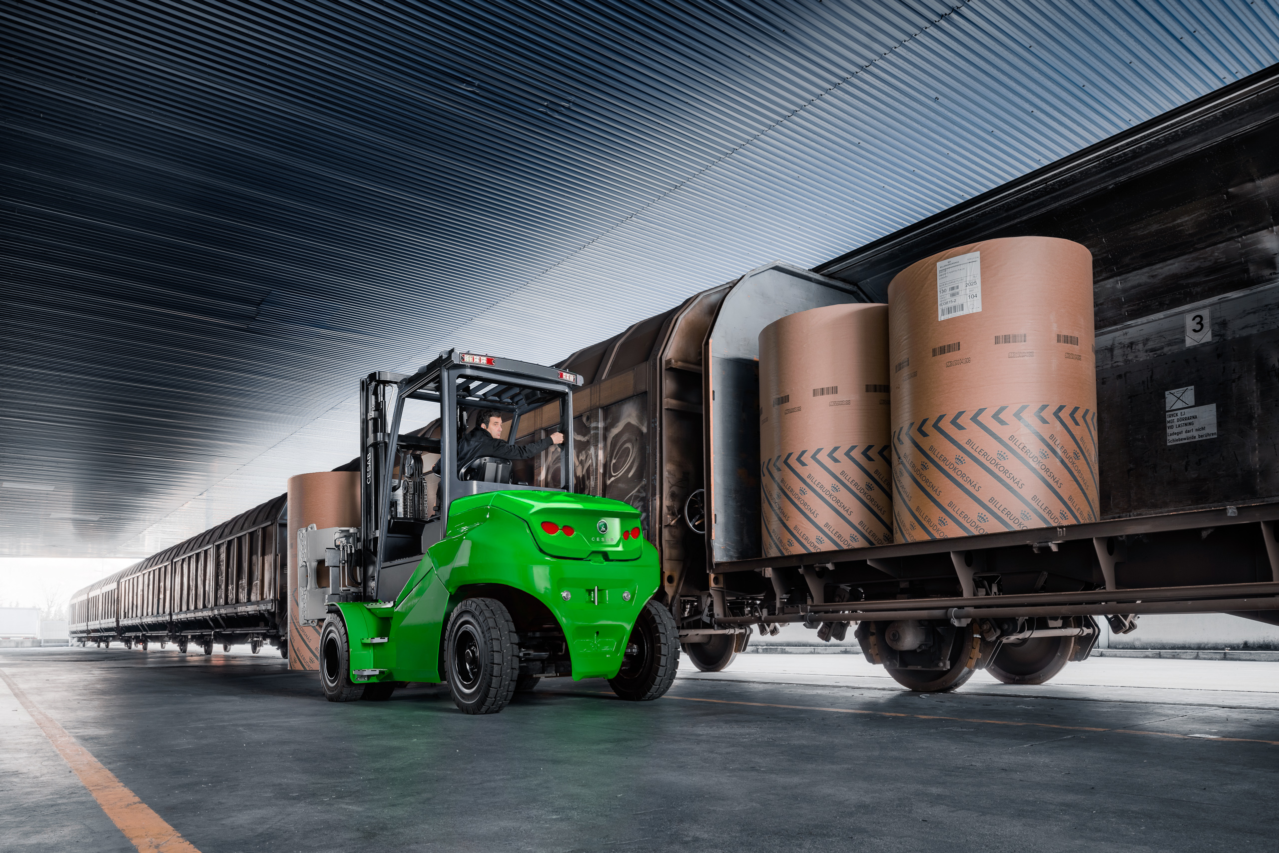 Električni čeoni viličar CESAB B800* za teške uvjete ima raspon visokog kapaciteta za terete do 8.500 kg.Off