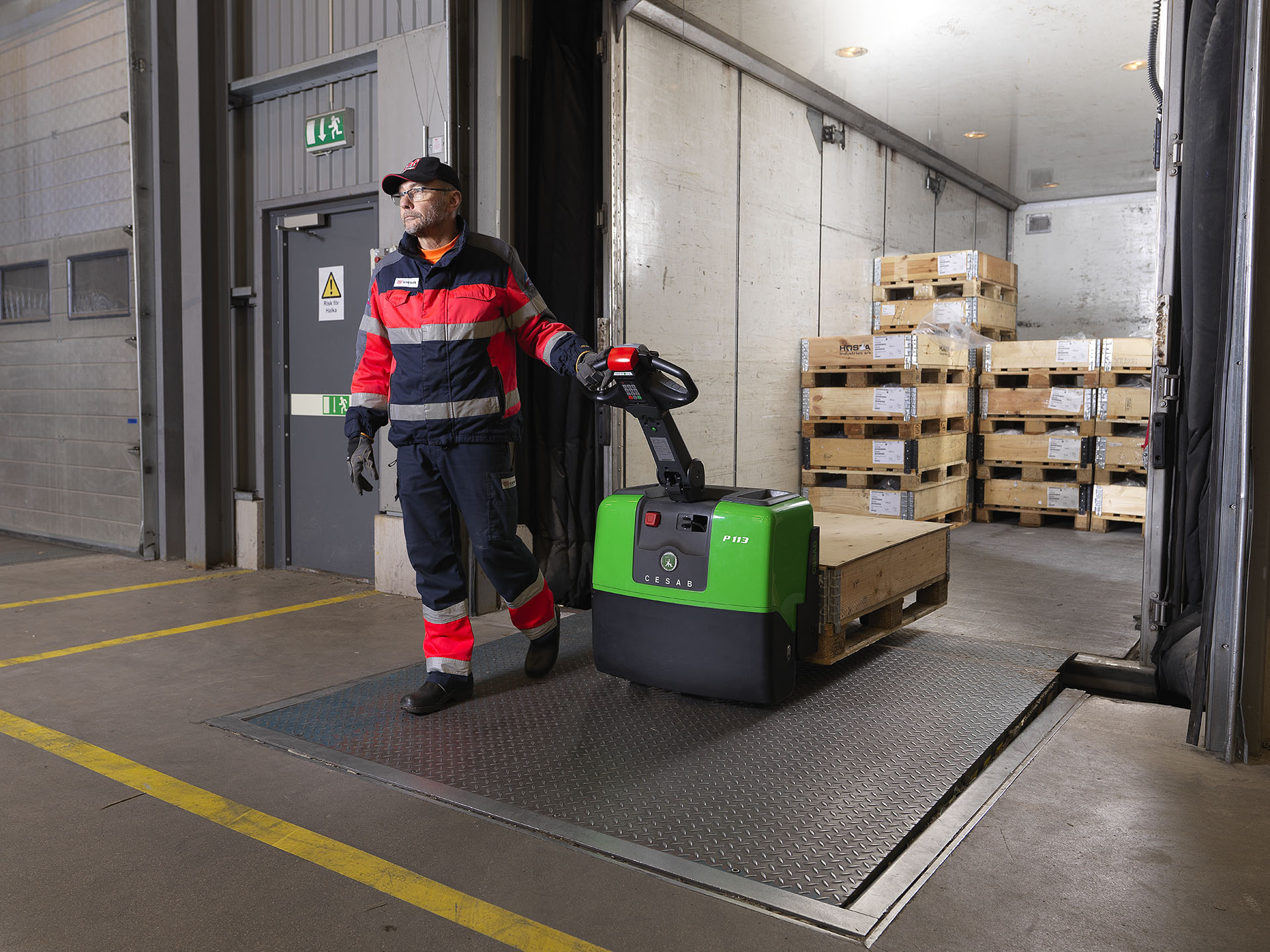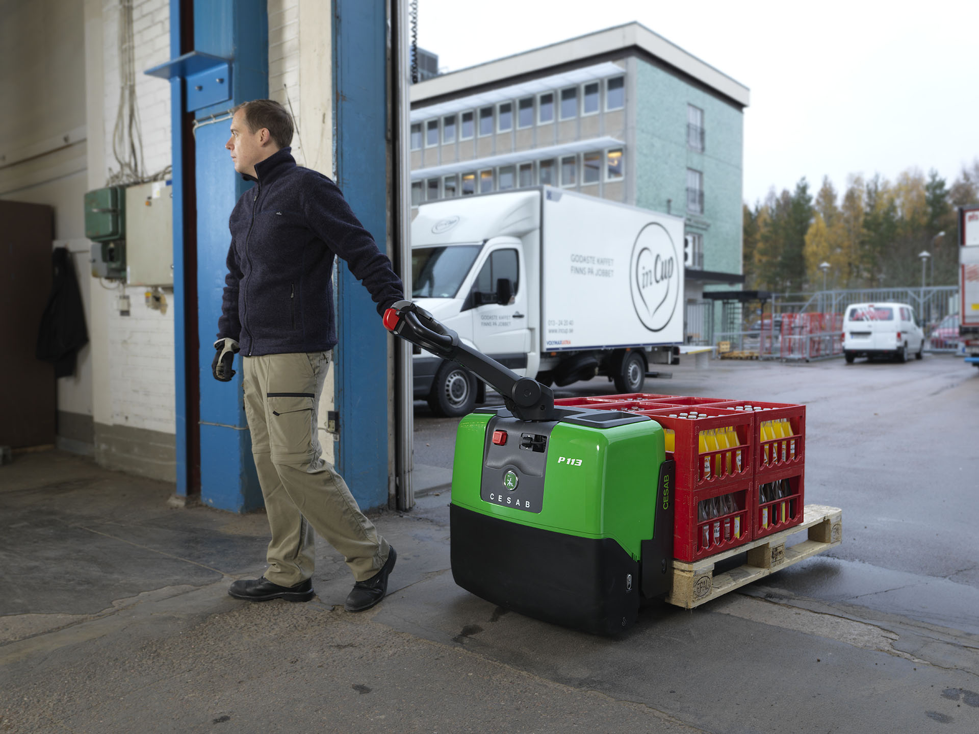 Izognite se ročni vleki, potiskanju in dviganju tovorov ter izboljšajte produktivnost. Gnani paletni viličar CESAB P113 je idealna nadgradnja z ročnega paletnega viličarja.